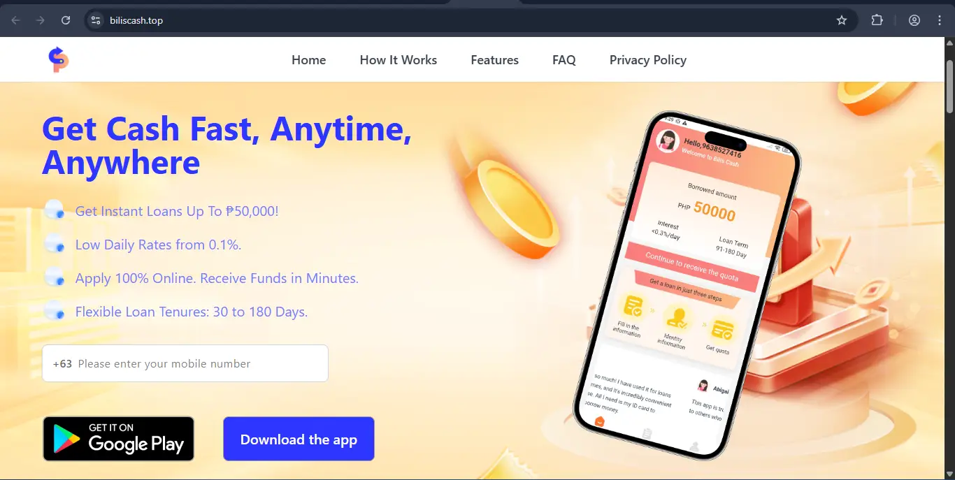 If you are browsing for emergency funds in the Philippines, you may have stumbled upon Bilis Cash (hosted at biliscash.top). They market themselves as a solution for Filipinos needing instant loans up to ₱50,000 without collateral, but our investigation raises serious red flags.