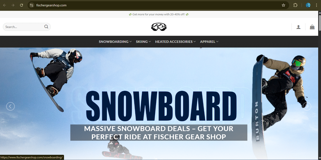 Fischergearshop.com is a fraudulent online store that lures customers with unrealistic discounts and fake promotions. While it looks like a