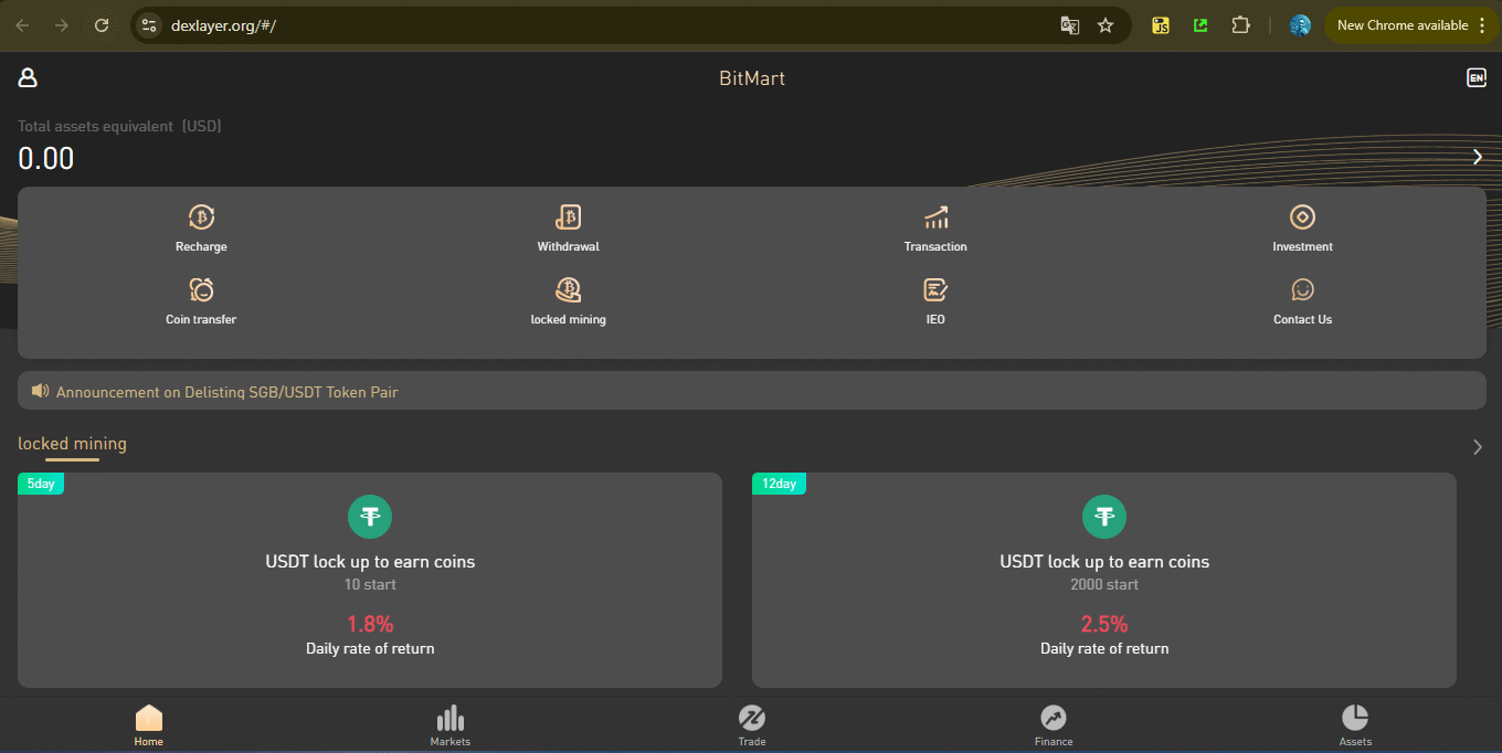 Dexlayer.org presents itself as a cryptocurrency investment and trading platform designed to help users grow their funds through various crypto plans. It advertises high returns within short timeframes, a strategy often used by suspicious platforms to lure investors.