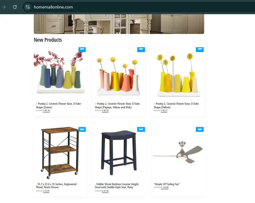 Homemallonline.com is a fraudulent online store that tricks you with unrealistic discounts and fake promotions. While it might look like a bargain retailer at first glance, the reality is much uglier. They deliver counterfeit products, low-quality junk, or often, nothing at all.