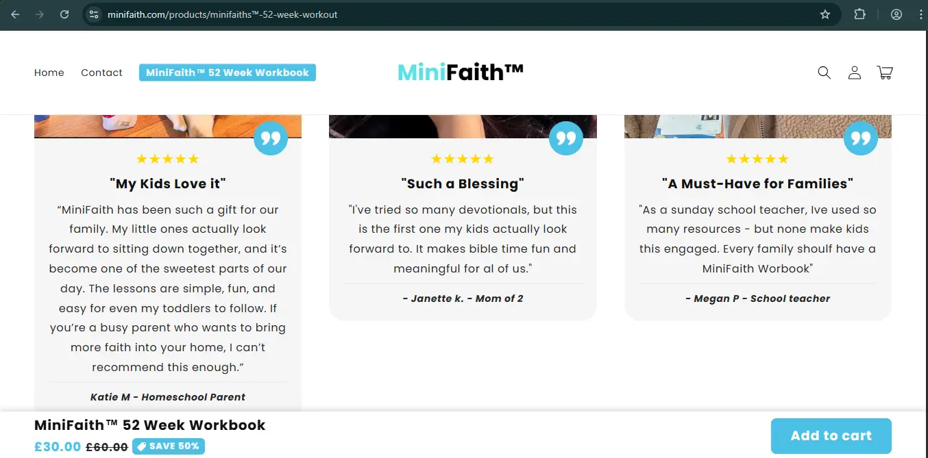 If you have been scrolling through Facebook or Instagram lately, you have likely seen the ads. A tear-jerking video about the state of modern youth, followed by a solution: The MiniFaith™ 52 Week Workbook. It claims to be the “#1 Kids Faith Tool of 2025,” promising to secure your child’s spiritual future for the price of £30 (down from £60, of course).