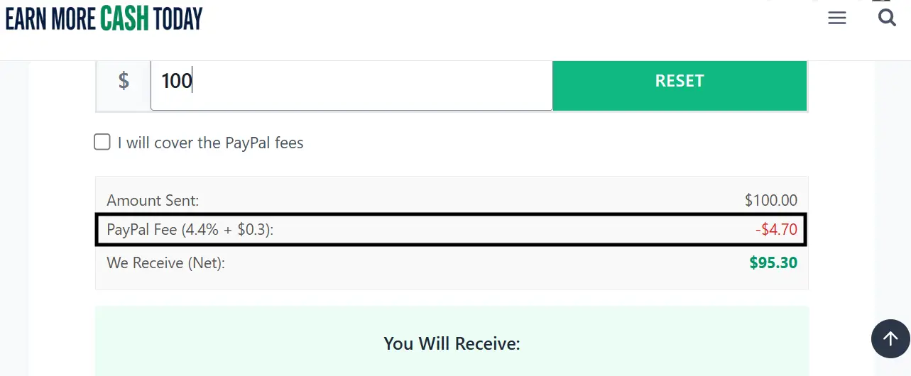 - Select “Sell PayPal”: Choose the first tab on the calculator.