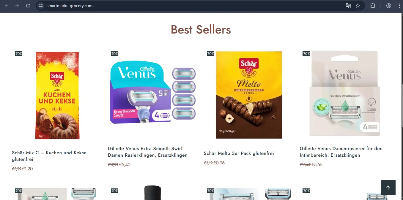 Smartmarketgrocery.com is a fraudulent online store that tricks you with unrealistic discounts and fake promotions. While it might look like a bargain retailer at first glance, the reality is much uglier. They deliver counterfeit products, low-quality junk, or often, nothing at all.