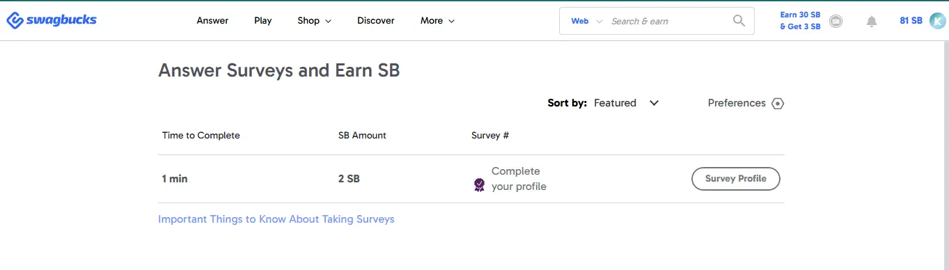 Surveys are the core of Swagbucks. You share your opinion on products, politics, or advertising, and earn between 25 SB to 200 SB per survey.