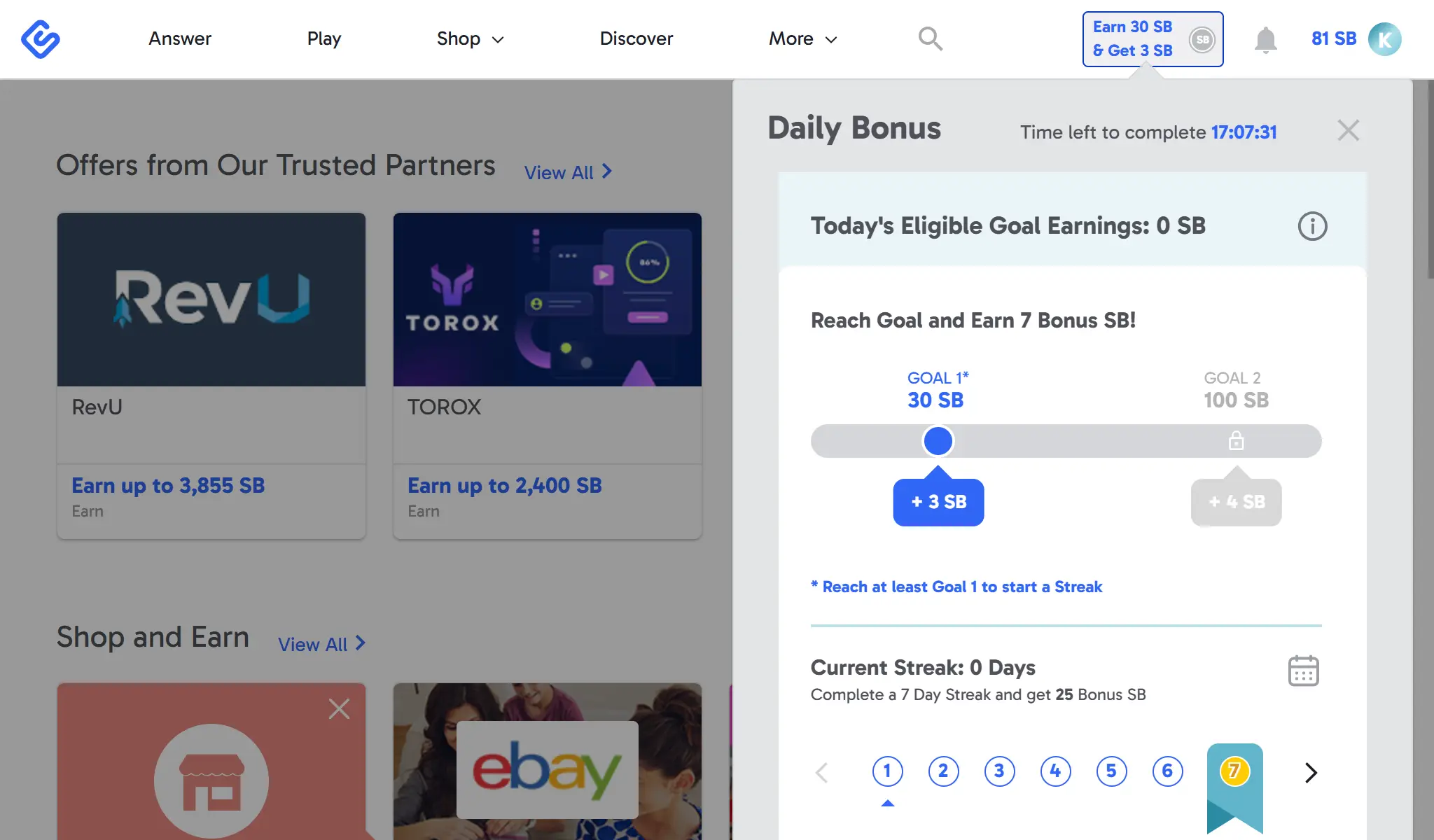 Example: If Home Depot offers “2 SB per $1 spent” and you buy a $100 drill, you earn 200 SB ($2.00) just for clicking their link.