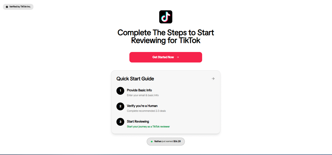 You will often see a badge claiming to be “Verified by TikTok Inc.” This is completely fake. TikTok does not have a “reviewer” program that recruits random users via random websites.