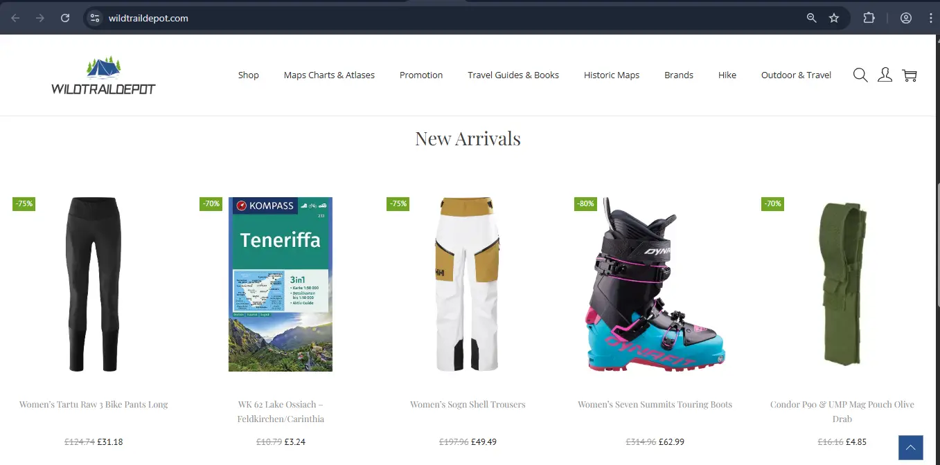 wildtraildepot.com is a fraudulent online store that tricks you with unrealistic discounts and fake promotions. While it might look like a bargain retailer at first glance, the reality is much uglier. They deliver counterfeit products, low-quality junk, or often, nothing at all.