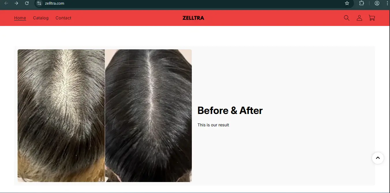 I classify Zelltra.com as high risk for shoppers. The site combines multiple credibility failures — a generic Gmail contact, missing verifiable business registration, unsubstantiated clinical claims and before/after images with no provenance, and no clear evidence of trusted third-party payment processors. Any one of these issues is concerning; together they make the site unsafe for purchases.